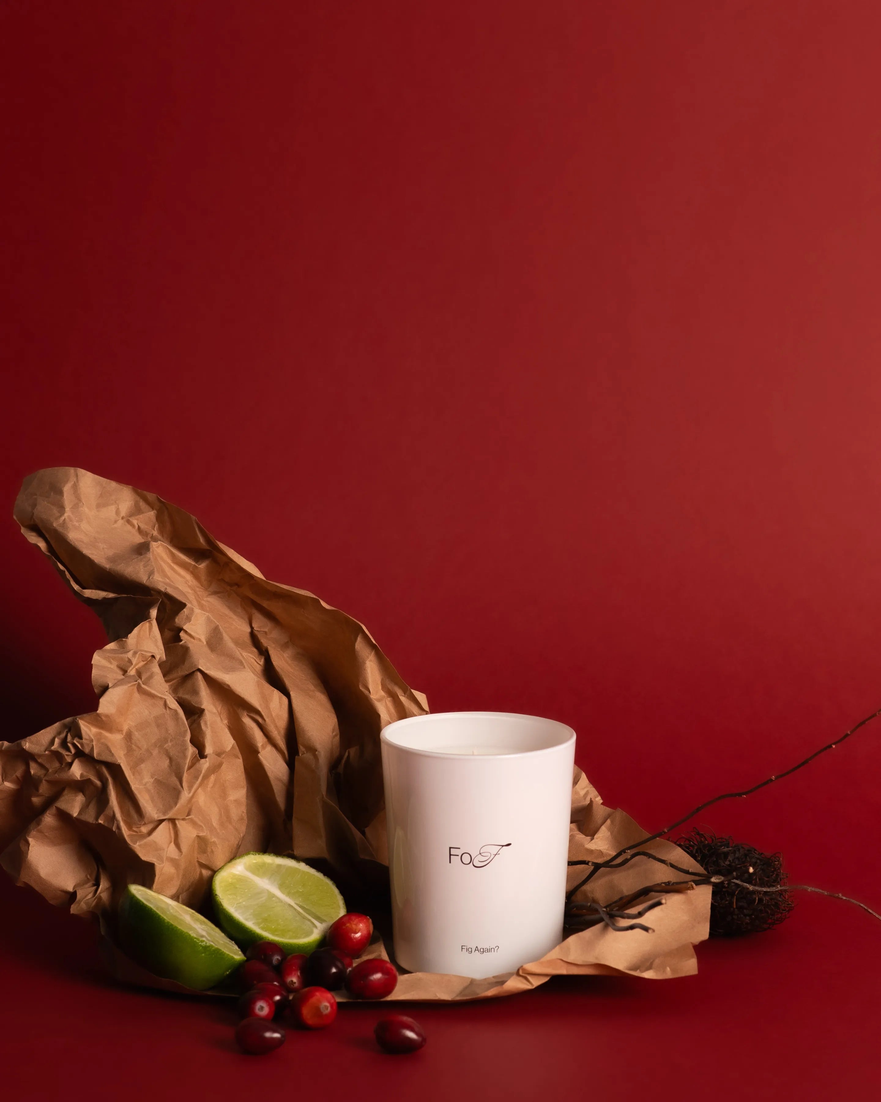 Fig Again? opens with the green sweetness of fresh fig, nuanced by geranium and lime for a sparkling, juicy brightness. In the heart, coconut and rhubarb balance the composition with a creamy–acidic contrast. The base of musk, violet, and powder notes rounds out the fragrance with a clean, soft finish. The result: a fresh, modern, and delicious candle — with just the right touch of sarcasm.