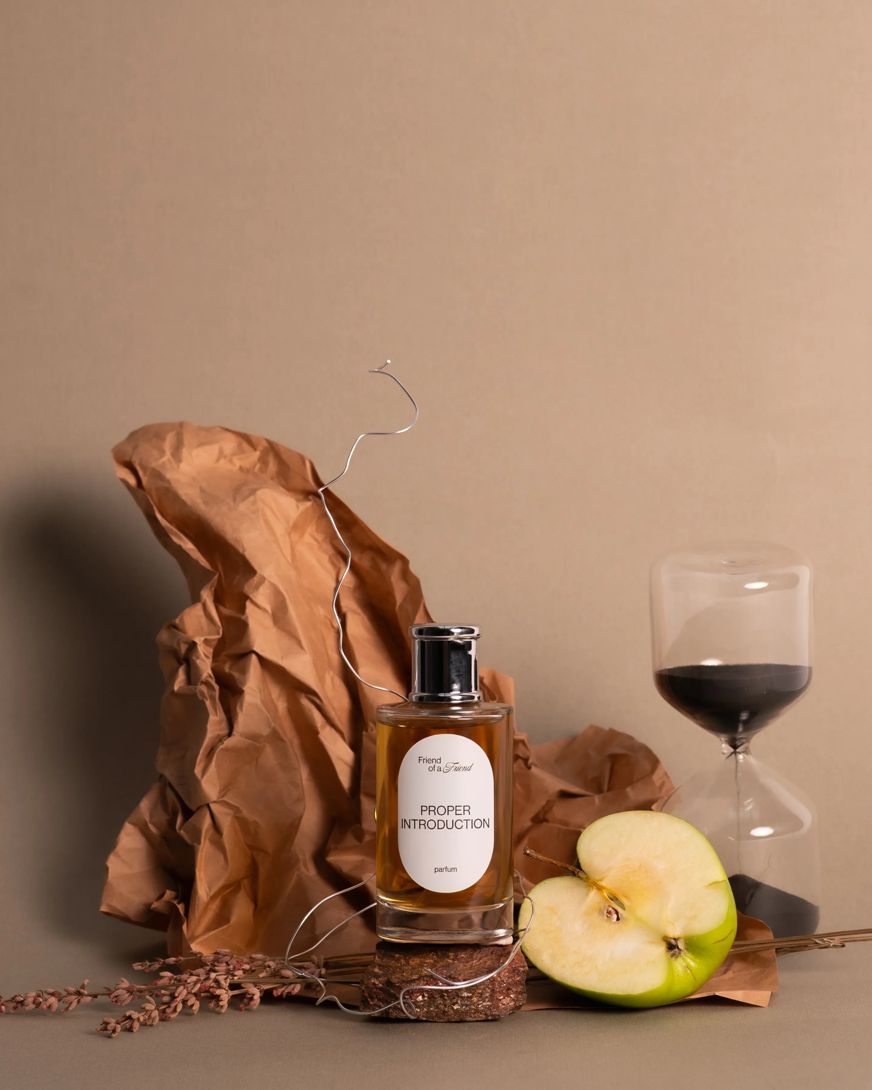 Proper Introduction opens with bold pink pepper that immediately commands attention and awakens the senses. Hints of pineapple soften and sweeten the spice — sunny, but never cloying. Crisp green apple adds a touch of vitality, refreshing and bright, like a breath of pure confidence. As the fragrance evolves, it reveals a more intimate and velvety heart. Lavender, violet leaf, and sage bring aromatic elegance — balanced, powdery, and quietly sophisticated. The green, talc-like nuance creates a contemplative and refined depth. The experience finally settles on warm, enveloping tones. The refinement of cedarwood, the sensuality of patchouli, and the softness of amber melt together in a tender, lasting embrace — leaving behind a trail of understated power and effortless grace.